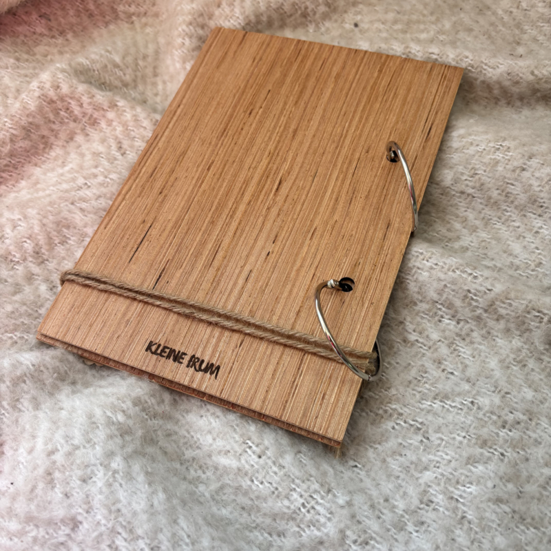 Deze houten bundel heeft als formaat 17 cm bij 24 cm zodat de meest gebruikte formaat van kaartjes erin passen. De bundel bestaat uit een houten voorzijde, een houten achterzijde en twee metalen ringen die je zelf kunt openen en sluiten. Maak deze bundel persoonlijk met jullie namen en trouwdatum. Met behulp van een perforator maak je gaatjes in de kaartjes en dan is het alleen nog een kwestie van de bewaarbundel vullen!